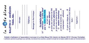 Plus que pour pouvoir être assurés dans le cadre des activités de l’association, l’adhésion permet 1) d’être informé.e de manière privilégiée des évènements programmés à la nOte bleue, 2) de pouvoir bénéficier de la mise à disposition des locaux d’activité ou d’hébergement et d’un tarif réduit pour l’entrée aux évènements programmés, et 3) de marquer son attachement à l’existence de ce lieu particulier et à ce qui s’y vit. L’adhésion court du 1er septembre au 31 août.
